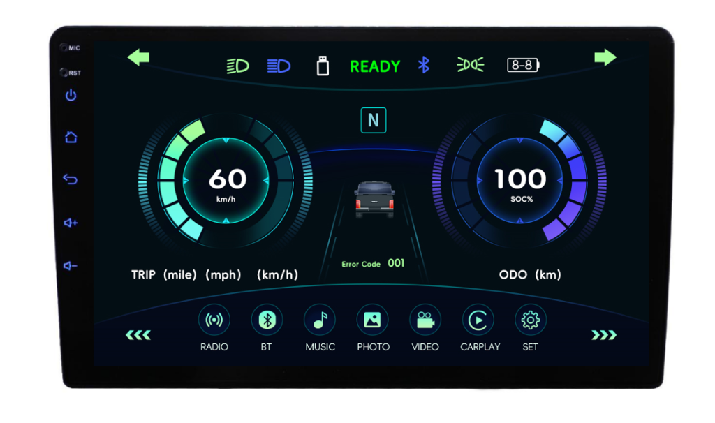 9寸大屏,适配市面多种常见车型,具备精准的仪表显示功能,拥有功能丰富的多媒体中控系统。驾驶者可以轻松掌控车辆的各项参数,同时享受高品质音乐、视频和调频收音机,以及倒车影像等服务。高清晰度的显示屏幕,让驾驶者清晰地了解车辆状态和行车信息。支持Carplay功能,手机 & 车机双向互连,实时共享手机地图导航 / 音乐 / 视频网络电台等,使用户能够在驾车时更安全、更方便地使用他们的设备,使驾驶变得更加简单和便捷。此外,还提供了多种语言和个性化设置,满足不同用户的需求。